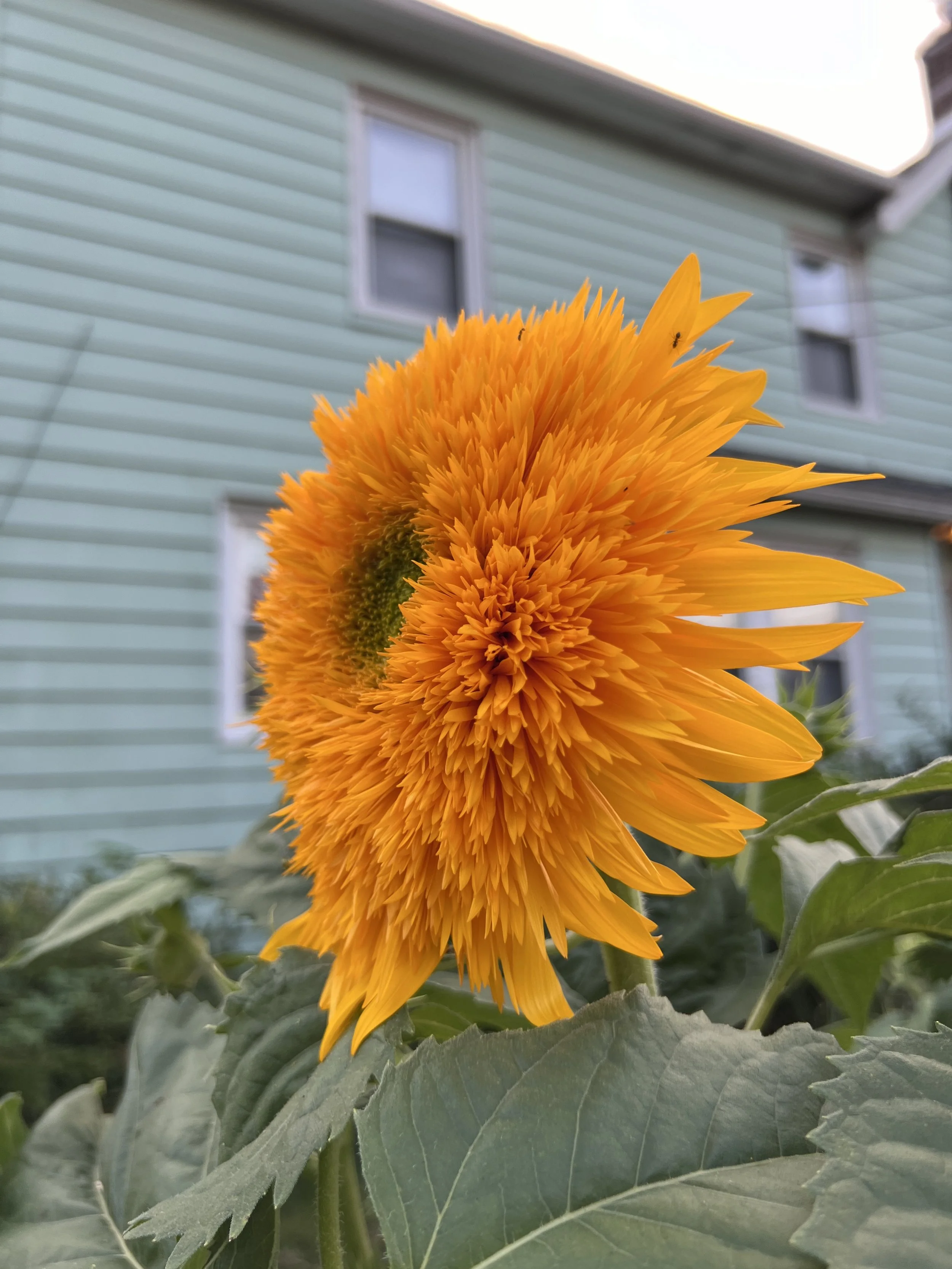 Sunflowers are iconic. Last year I grew Double Sunking Sunflowers (Baker Creek) a fluffy variety of sunflower unlike any I’ve seen before. They have thin feathery petals that are densely packed together. Mine grew between 4 and 6 feet in height with HUGE leaves over 1 foot across.