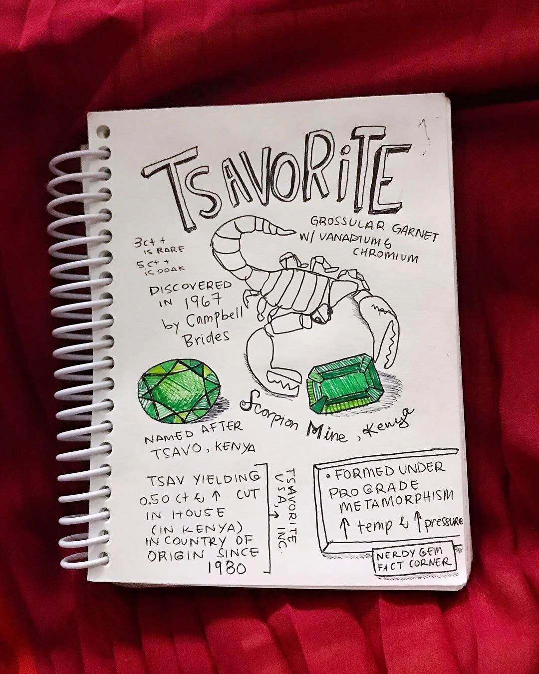 Since my first Art History class in high school, I have always been passionate about incorporating illustrations into my note taking as a way to more richly tell the story of the subject I am learning. My notes were no different in college when I was studying as an Art History major or at the Gemological Institute of America when I was earning my Graduate Gemologist certification. After learning about gemstones in an academic setting, I was quickly inspired to share this knowledge with the community I was building on Instagram. Utilizing my approachable illustration style, I have created a variety of media celebrating the science, beauty, and lore behind countless gemstones. I describe this content as your gateway to the world of gems!