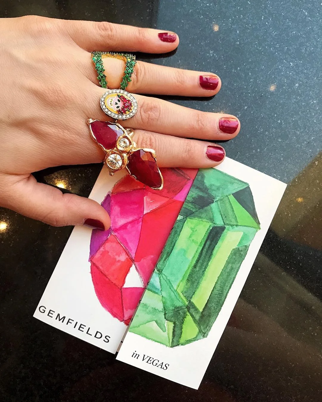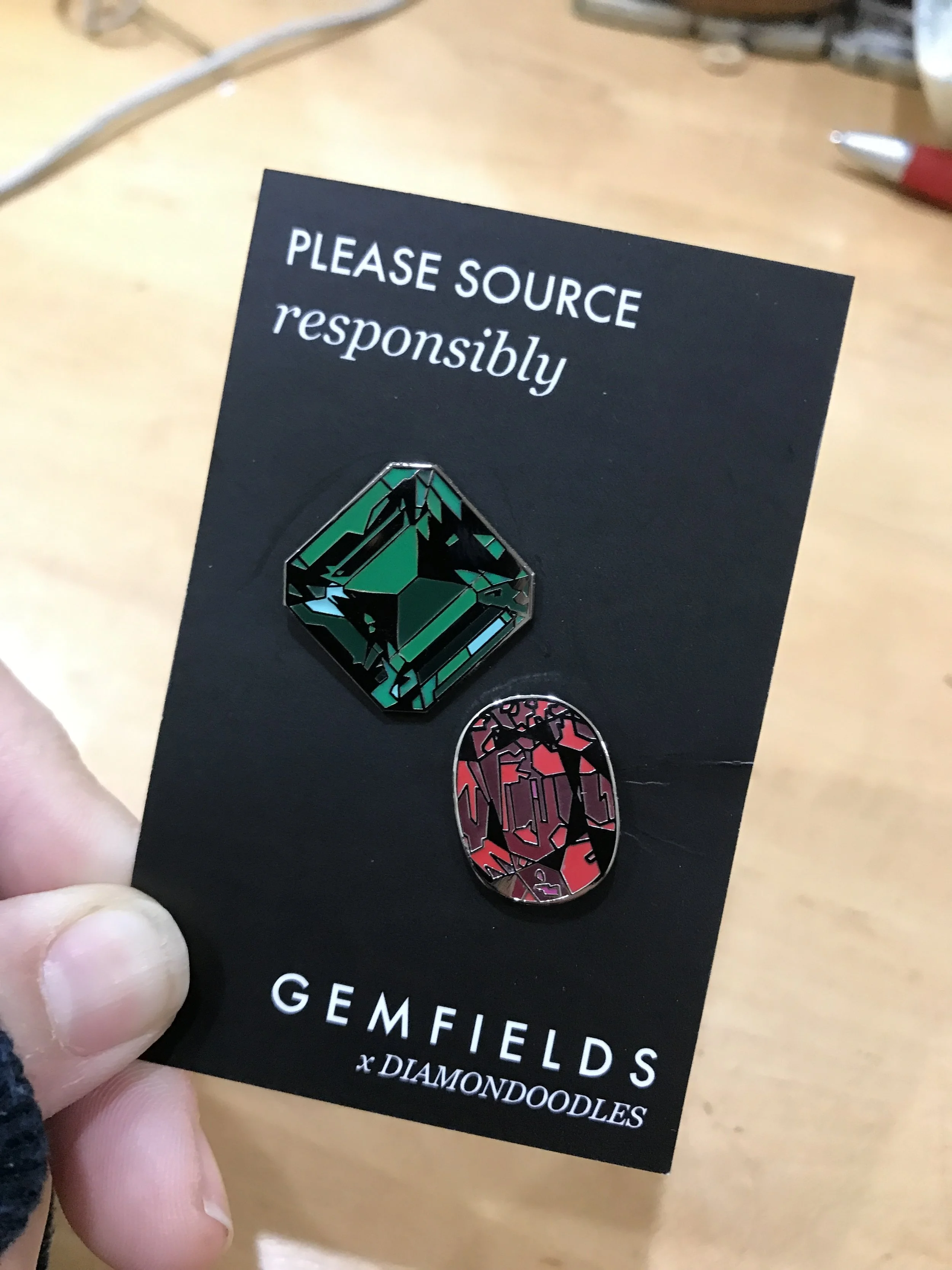 Gemfields, a global emerald and ruby supplier, commissioned a brochure and custom designed enamel pin set to promote a group of designers who created jewelry collections using their gemstones at the couture show, the pre-eminent luxury jewelry and timepiece trade show in the usa.