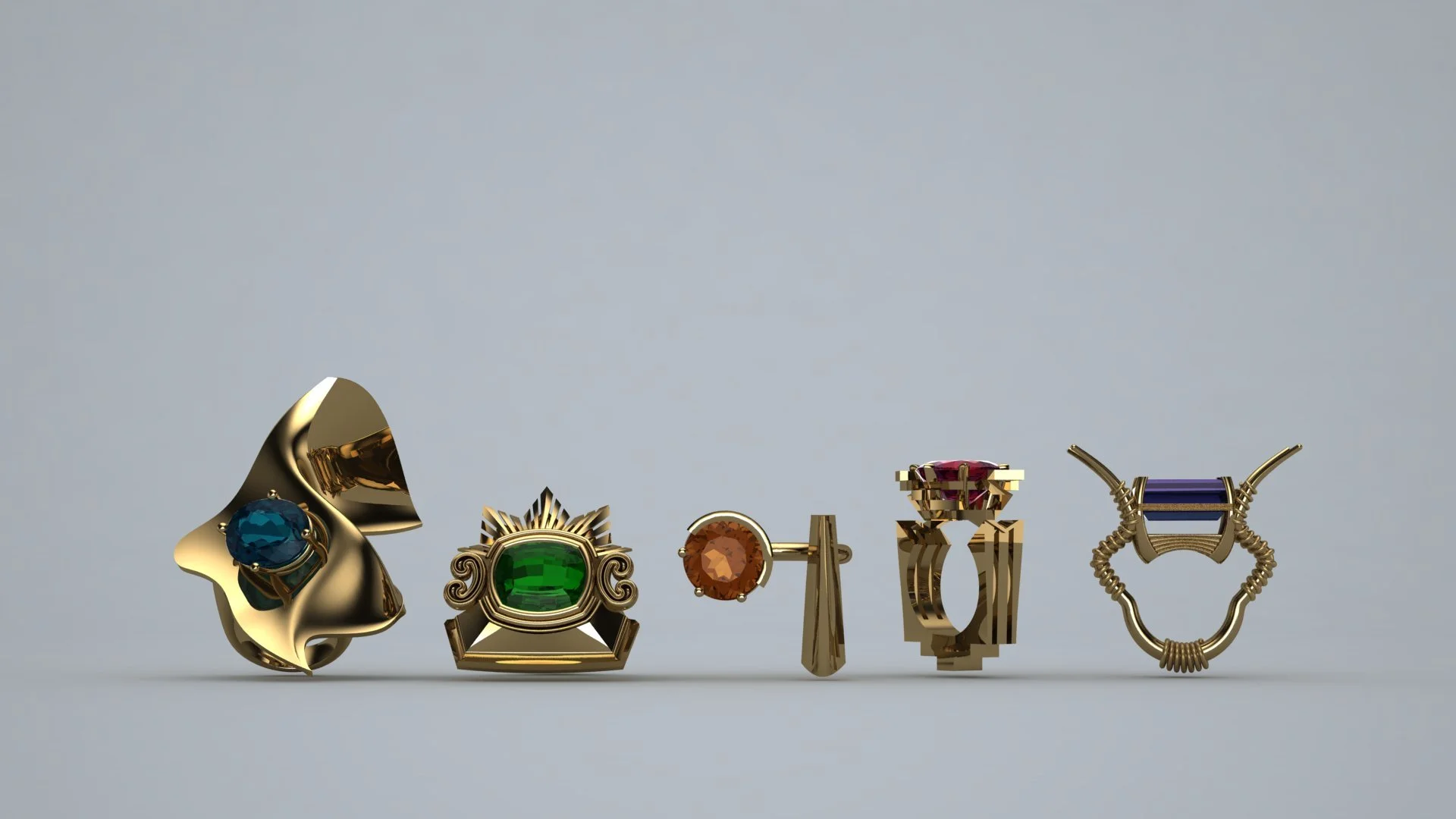 I challenged myself with this assignment to create a non-traditional three stone ring, so that I could push the limits of my cad training beyond traditional mountings and create something more sculptural.