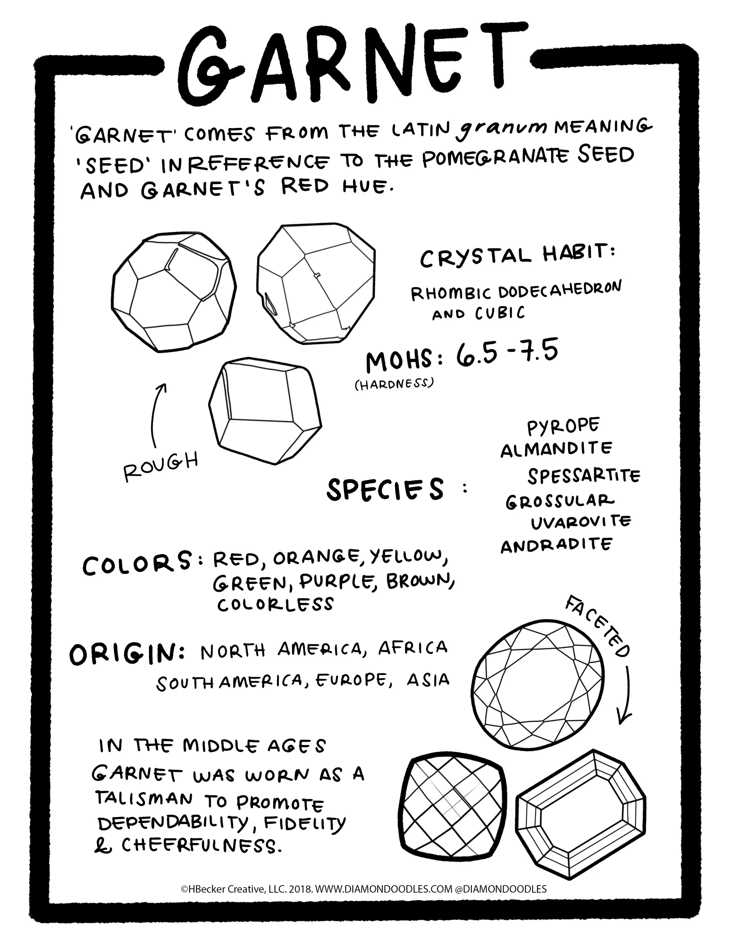 in march 2020, when the entire world locked down for covid quarantine, i was anxious and antsy and wanted a way to connect with friends, industry colleagues, followers, and my niece. I created quarantine coloring club, creating gemstone and jewelry themed coloring pages that range from frivolously fun to rather educational. I had previously created a set of coloring pages themed after january’s birthstone, garnet, and attempted to continue on the birthstone education theme.